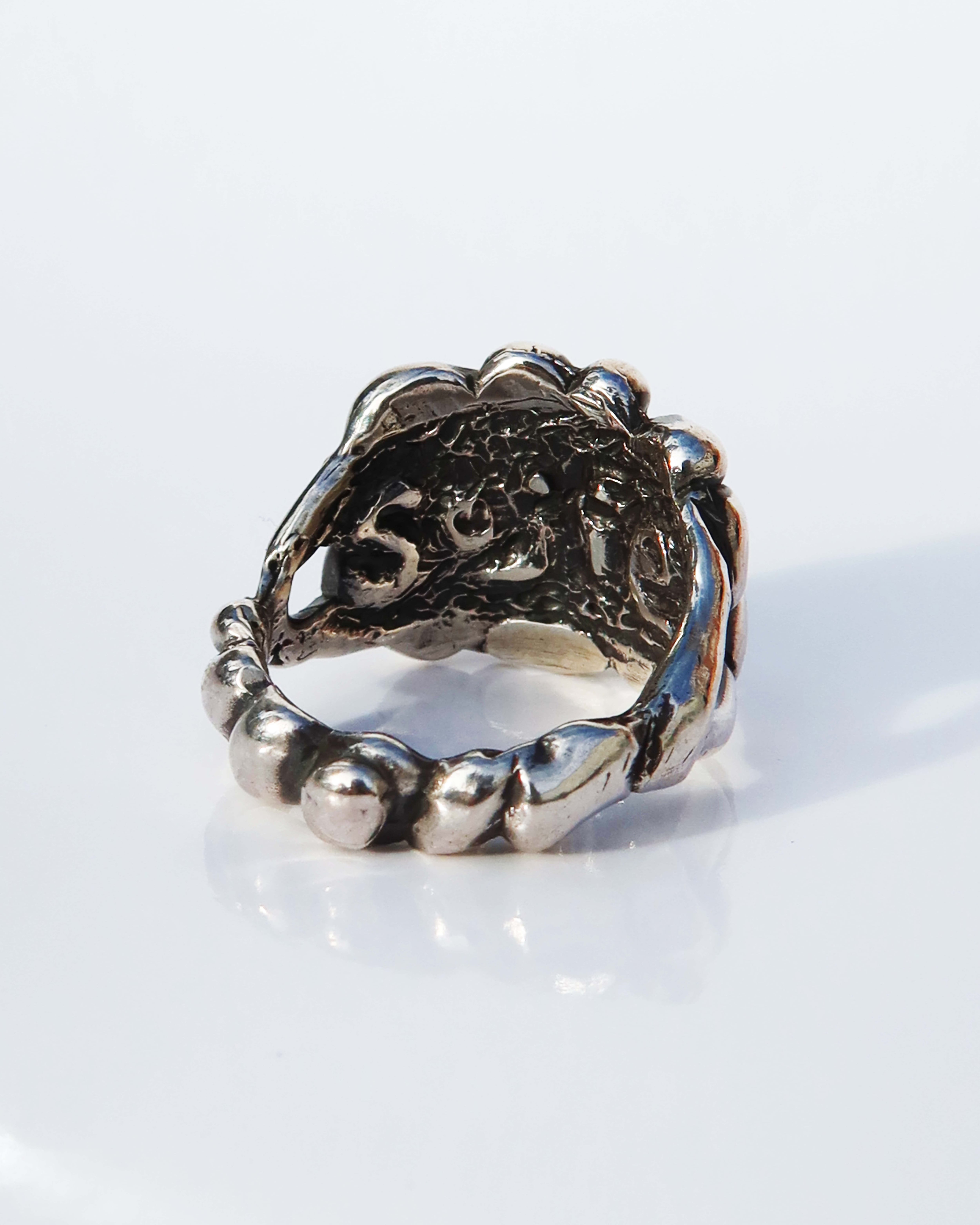 服装を選ぶ指輪ではなく、シンプルな格好でも、手元にこれがあるだけで目に留まる。